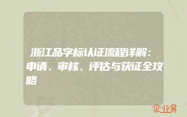 - 浙江品字标认证流程详解:申请、审核、评估与获证全攻略