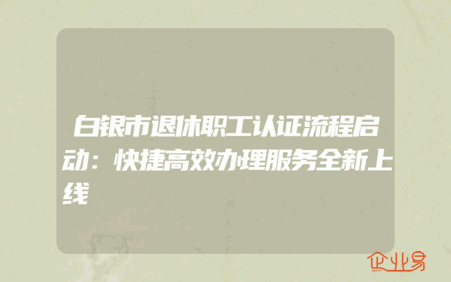 - 白银市退休职工认证流程启动:快捷高效办理服务全新上线
