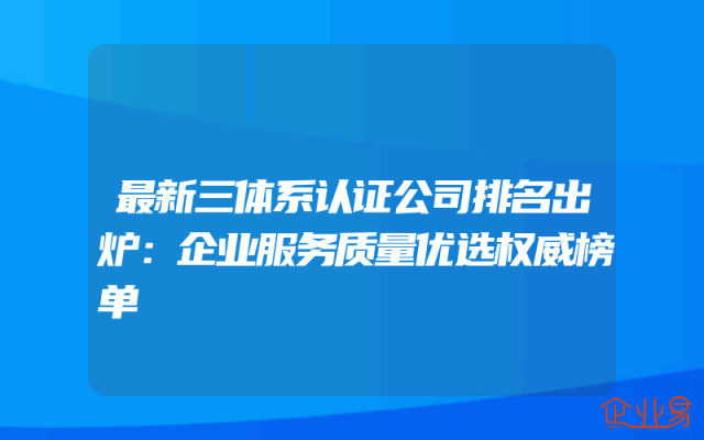 - 最新三体系认证公司排名出炉:企业服务质量优选权威榜单