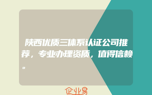 - 陕西优质三体系认证公司推荐,专业办理资质,值得信赖。