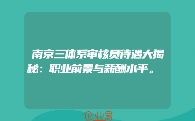 - 南京三体系审核员待遇大揭秘:职业前景与薪酬水平。