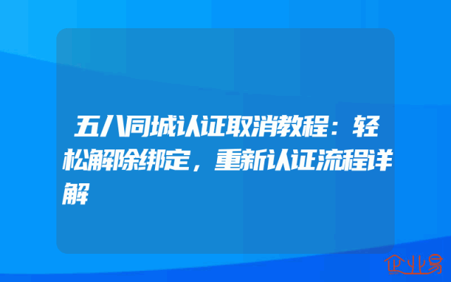 - 五八同城认证取消教程:轻松解除绑定,重新认证流程详解一、为什么要取消或更改五八同城认证随着企业需求的不断变化,有时候我们可能需要取消或更改在五八同城上的认证信息。可能是因为企业信息更新,或者因为策略调整