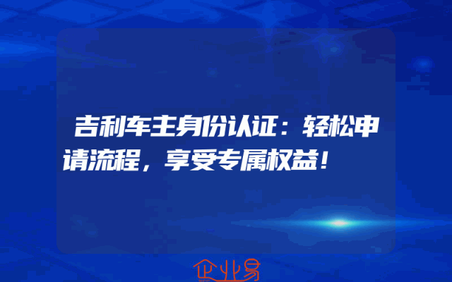 - 吉利车主身份认证:轻松申请流程,享受专属权益!