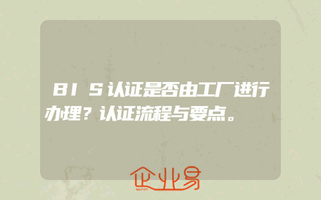 - BIS认证是否由工厂进行办理?认证流程与要点。
