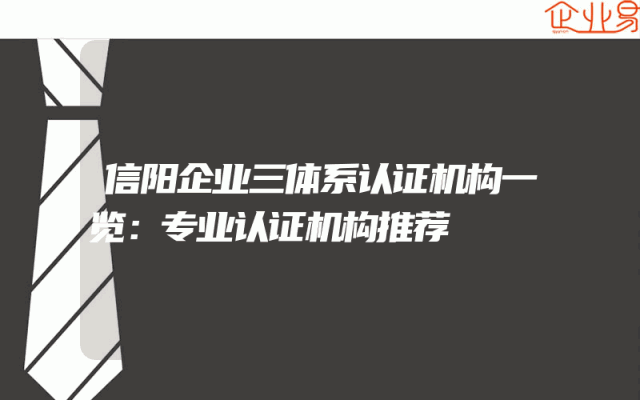 - 信阳企业三体系认证机构一览:专业认证机构推荐