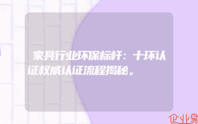 - 家具行业环保标杆:十环认证权威认证流程揭秘。