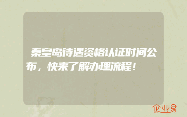 - 秦皇岛待遇资格认证时间公布,快来了解办理流程!