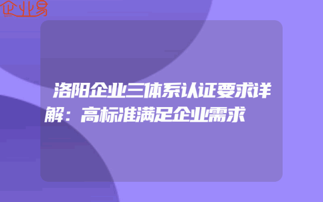 - 洛阳企业三体系认证要求详解:高标准满足企业需求