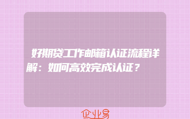 - 好期贷工作邮箱认证流程详解:如何高效完成认证?
