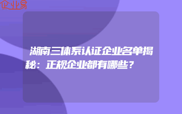 - 湖南三体系认证企业名单揭秘:正规企业都有哪些?