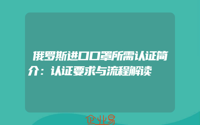 - 俄罗斯进口口罩所需认证简介:认证要求与流程解读