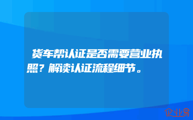 - 货车帮认证是否需要营业执照?解读认证流程细节。