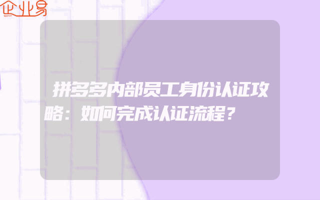 - 拼多多内部员工身份认证攻略:如何完成认证流程?