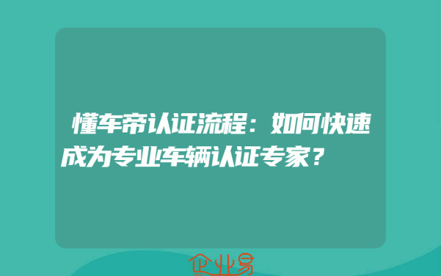 - 懂车帝认证流程:如何快速成为专业车辆认证专家?