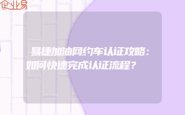 - 易捷加油网约车认证攻略:如何快速完成认证流程?