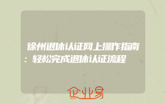 - 徐州退休认证网上操作指南:轻松完成退休认证流程
