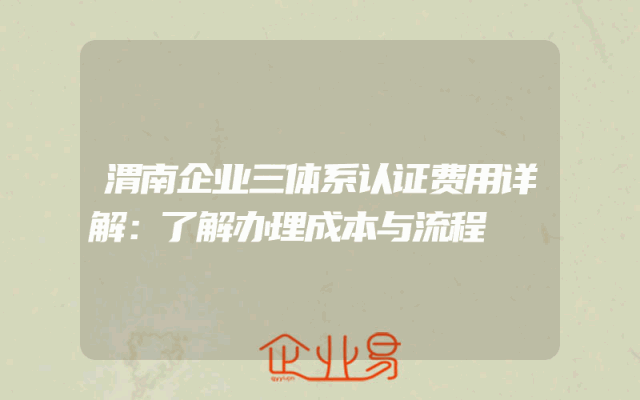 - 渭南企业三体系认证费用详解:了解办理成本与流程