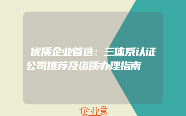 - 优质企业首选:三体系认证公司推荐及资质办理指南