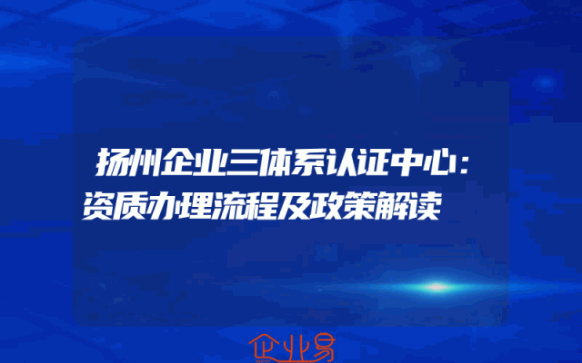 - 扬州企业三体系认证中心:资质办理流程及政策解读