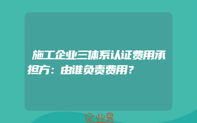 - 施工企业三体系认证费用承担方:由谁负责费用?