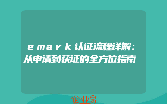 - EMARK认证流程详解:从申请到获证的全方位指南了解EMARK认证及其重要性随着全球贸易的不断发展,产品出口到海外市场已经成为企业发展的重要途径。EMARK认证作为欧盟市场的一项强制性认证,对于出口企业来说显得尤为重要。它是对产品安