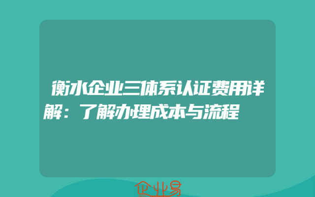 - 衡水企业三体系认证费用详解:了解办理成本与流程