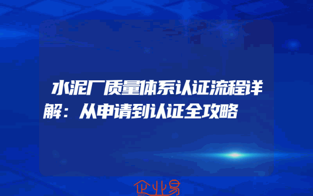 - 水泥厂质量体系认证流程详解:从申请到认证全攻略
