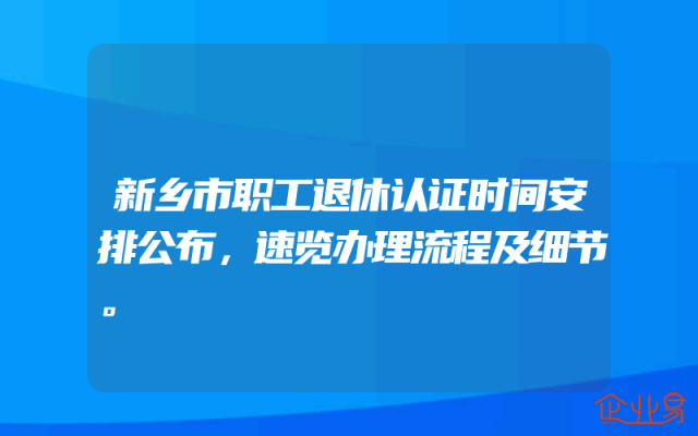 - 新乡市职工退休认证时间安排公布,速览办理流程及细节。