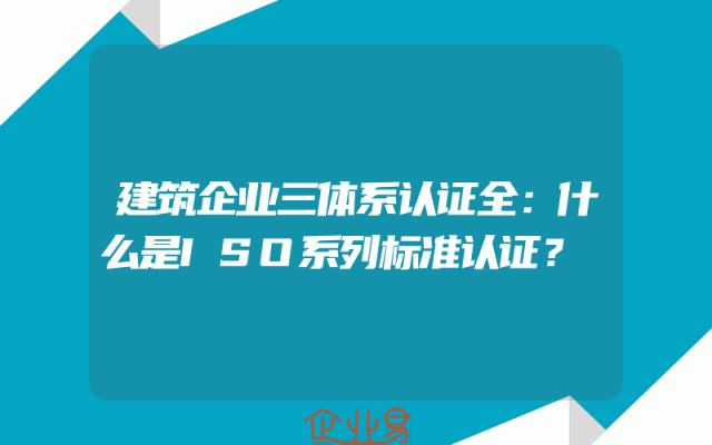 - 建筑企业三体系认证全:什么是ISO系列标准认证?