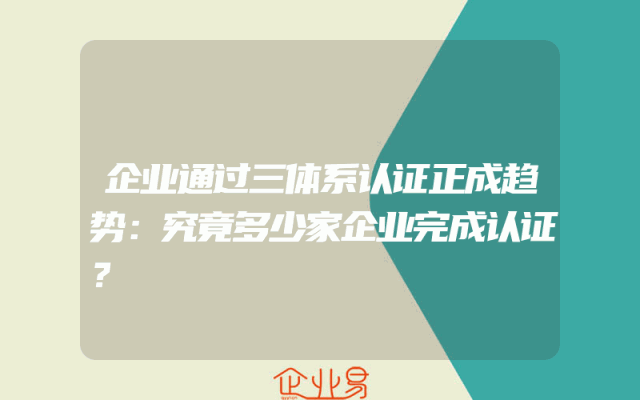 - 企业通过三体系认证正成趋势:究竟多少家企业完成认证?