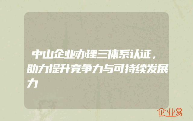 - 中山企业办理三体系认证,助力提升竞争力与可持续发展力