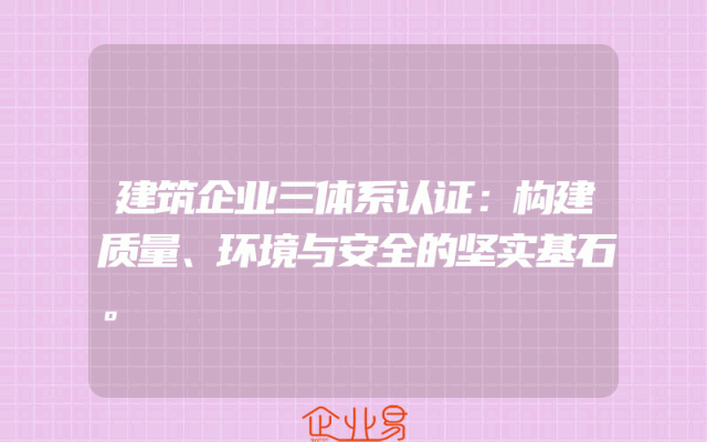 - 建筑企业三体系认证:构建质量、环境与安全的坚实基石。