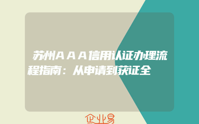 - 苏州AAA信用认证办理流程指南:从申请到获证全