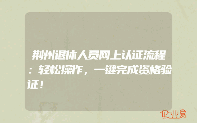 - 荆州退休人员网上认证流程:轻松操作,一键完成资格验证!