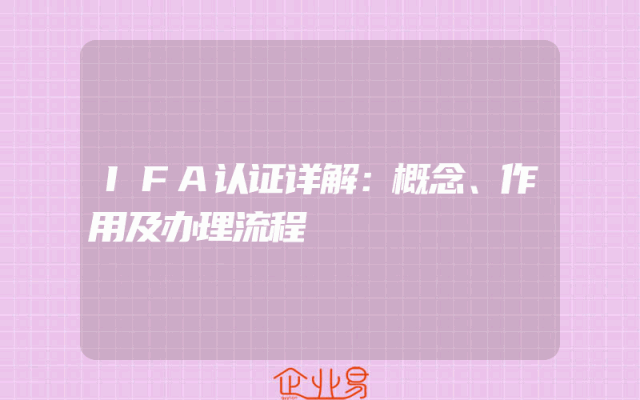 - IFA认证详解:概念、作用及办理流程