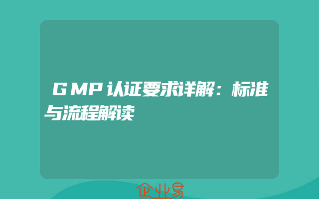 - GMP认证要求详解:标准与流程解读