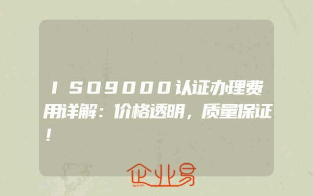 - ISO9000认证办理费用详解:价格透明,质量保证!