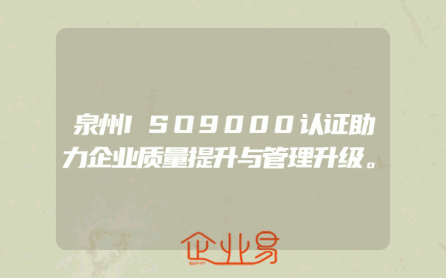 - 泉州ISO9000认证助力企业质量提升与管理升级。