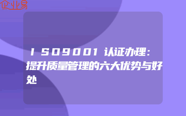 - ISO9001认证办理:提升质量管理的六大优势与好处