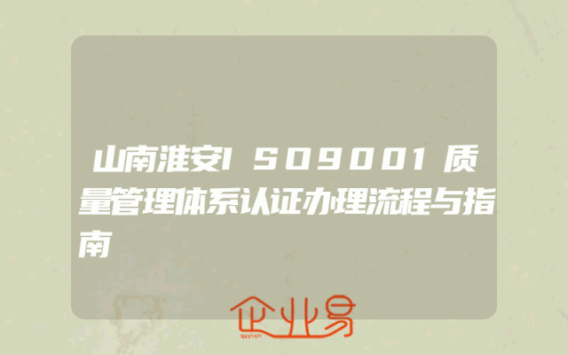 - 山南淮安ISO9001质量管理体系认证办理流程与指南