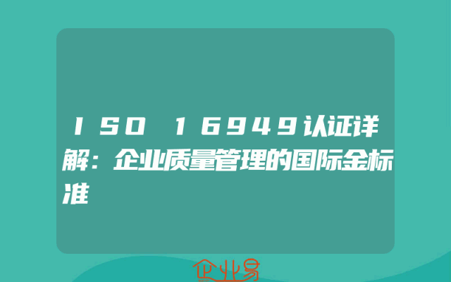 - ISO 16949认证详解:企业质量管理的国际金标准