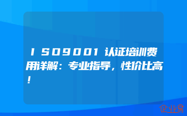 - ISO9001认证培训费用详解:专业指导,性价比高!