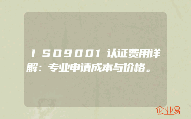 - ISO9001认证费用:多少钱获取企业品质保证?