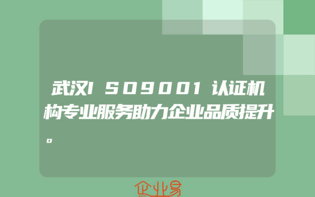 - 武汉ISO9001认证机构专业服务助力企业品质提升。