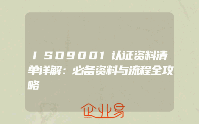 - ISO9001认证资料清单详解:必备资料与流程全攻略