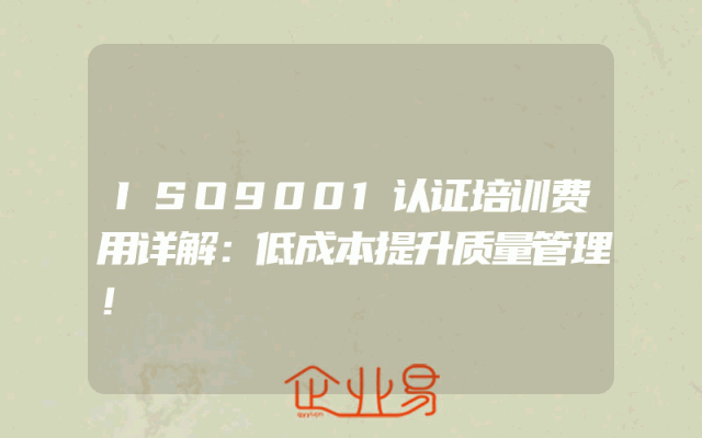 - ISO9001认证培训费用详解:低成本提升质量管理!
