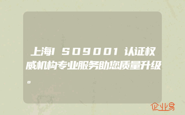 - 上海ISO9001认证权威机构专业服务助您质量升级。