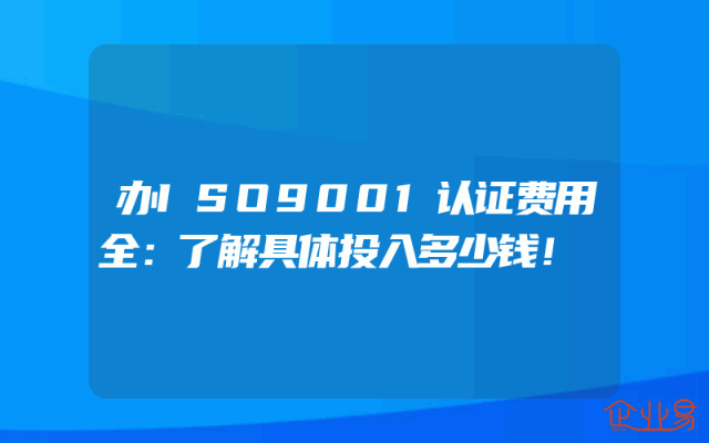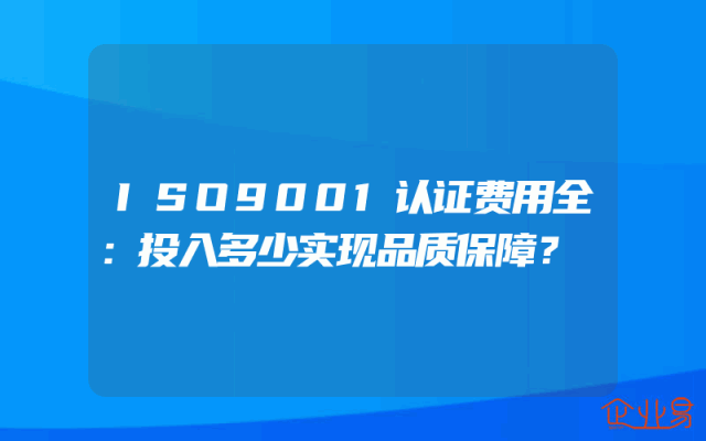 - 办ISO9001认证费用全:了解具体投入多少钱!