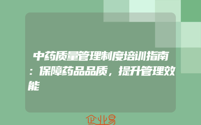 - 中药质量管理制度培训指南:保障药品品质,提升管理效能