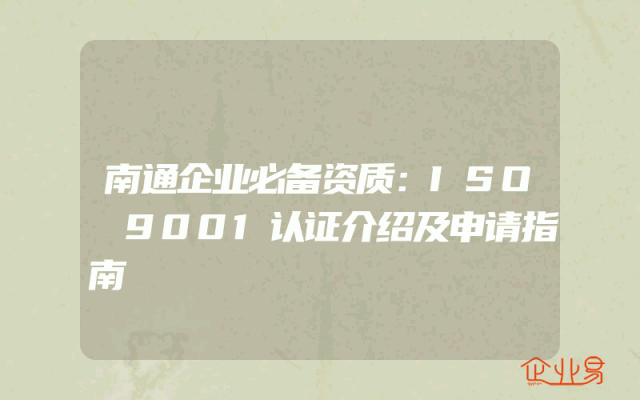 - 南通企业必备资质:ISO 9001认证介绍及申请指南